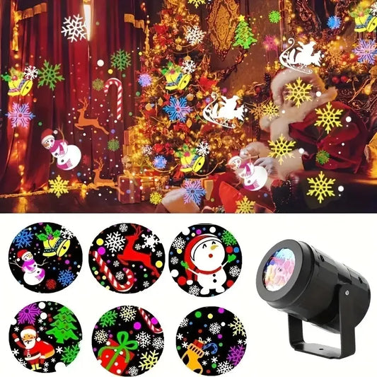 Christmas LED Projector Light USB-Powered RGB Holiday Party Ambient Light with Snowflakes Santa Hats for Home or Stores