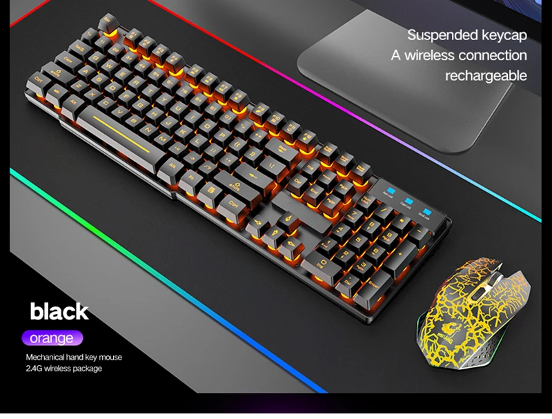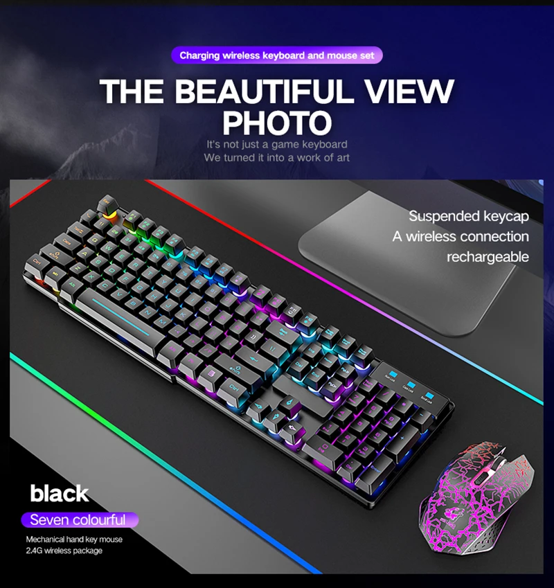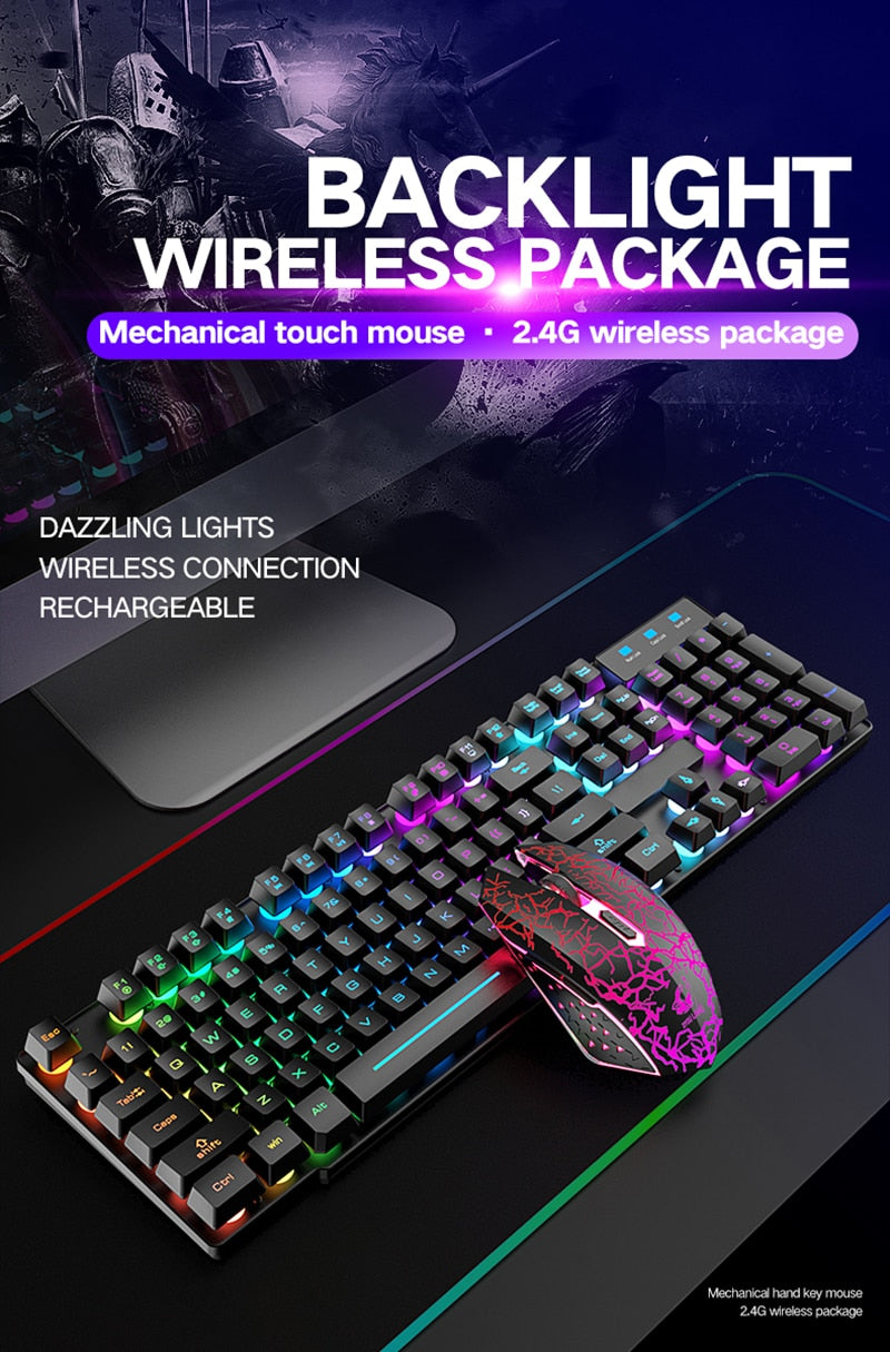 2.4G Wireless LED Keyboard and Mouse, Portable, LED Backlight, 104 Keyboard, 2400DPI Mouse, Gamer Kit for Laptop, Desktop, Laptop etc.