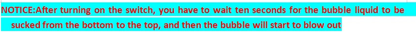 3. Allow a few seconds to start: After switching on, wait about 5 seconds for the bubble liquid to reach the mechanism—then watch the bubbles flow!