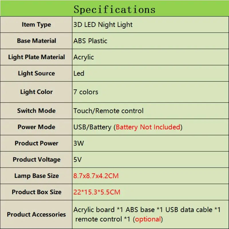 - Two power supply options: USB cable or 3x AA batteries (not included)