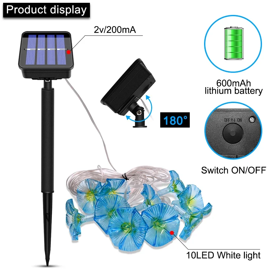 Model Number: 10LED Morning Glory Solar Fairy Decorative String Lights